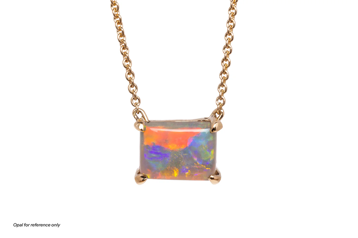 Pair your favourite opal with the classic Ruthie Claw Necklace. Your opal will be set horizontally in your metal of choice and then attached to a 45cm chain (If you would like a shorter chain, please let us know in the order notes at checkout).